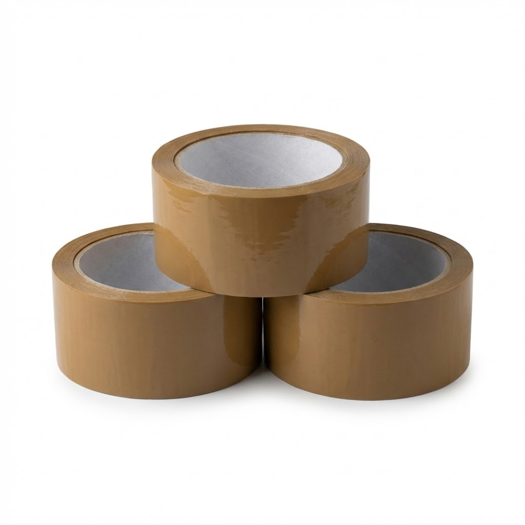 Cinta adhesiva marrón para embalaje.