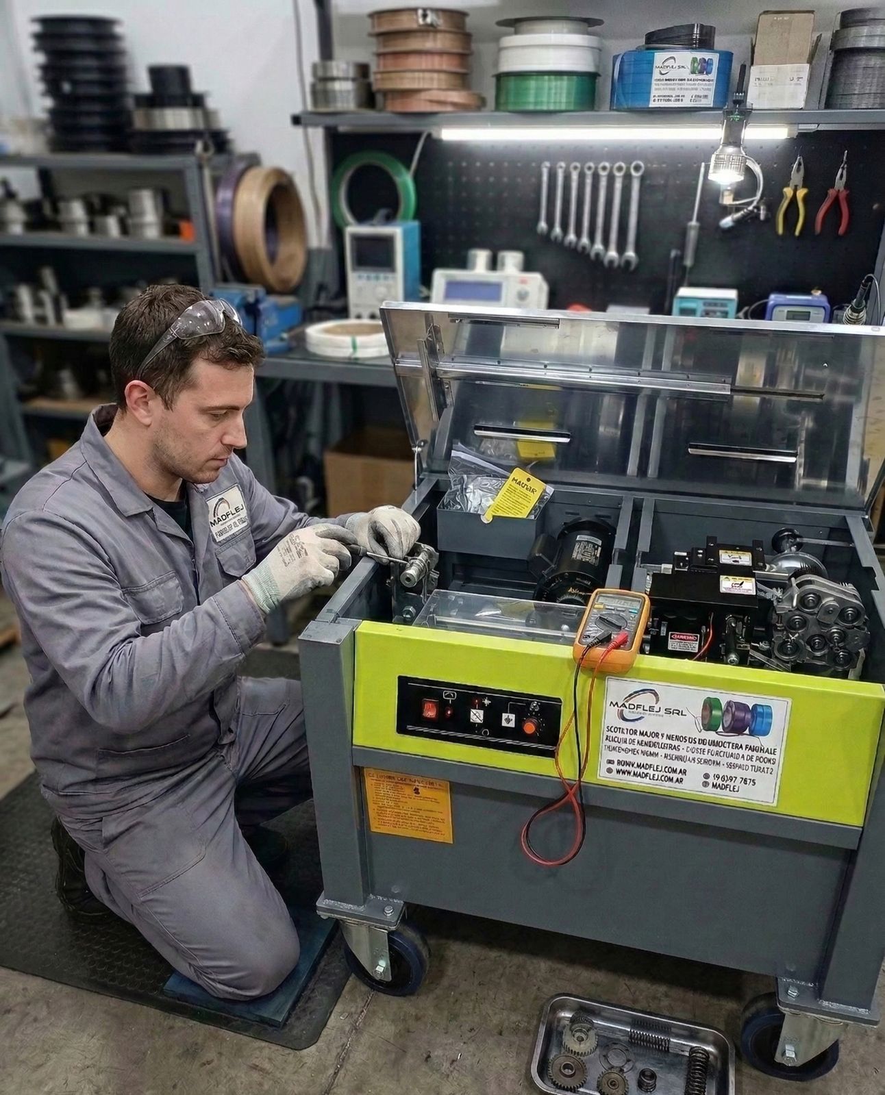 En Madflej no solo vendemos insumos y máquinas para embalaje: nos ocupamos de que tu operación no se detenga. Por eso contamos con Servicio Técnico en nuestro taller, pensado para darte una solución rápida, efectiva y sin vueltas.